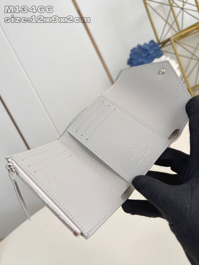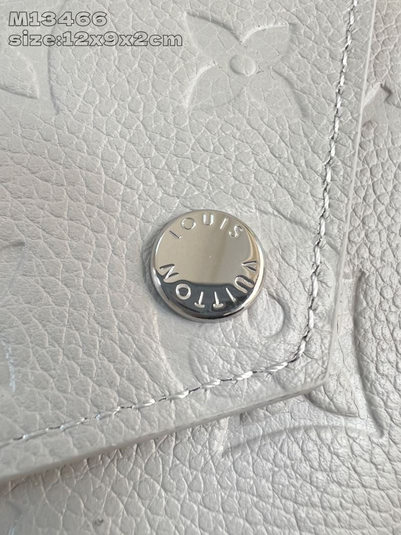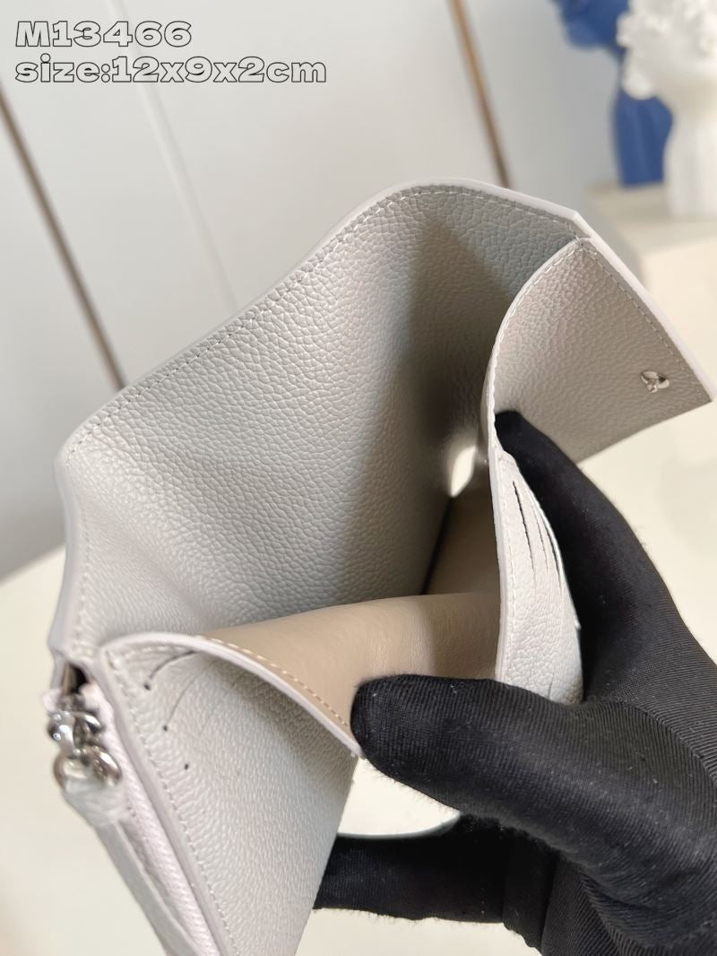• Features a soft grey leather with embossed monogram detail